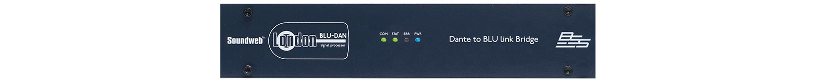 La compatibilidad de HARMAN con el audio en red Dante permite que el audio pase a través de dispositivos BSS Soundweb London a cualquier amplificador habilitado para enlace Crown BLU. Estos procesadores Soundweb London permiten utilizar Dante para pasar audio entre múltiples ubicaciones, capaz de enrutar a través de conmutadores e infraestructura de red existente.